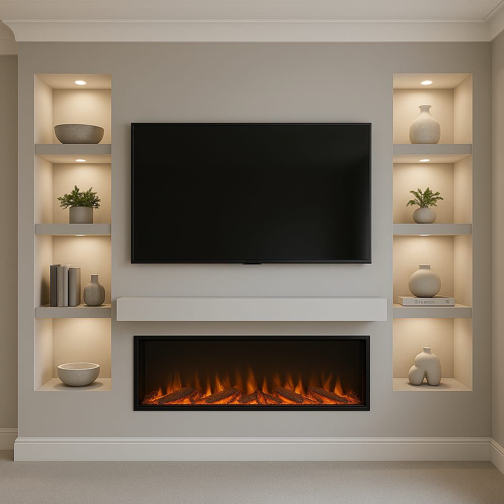 Whether you’d like a sleek setup for your TV, integrated shelving for storage, or a show-stopping feature with mood lighting and a built-in fireplace, we can make it happen. Every media wall is carefully planned to suit your space and lifestyle, ensuring the perfect balance of beauty and practicality.